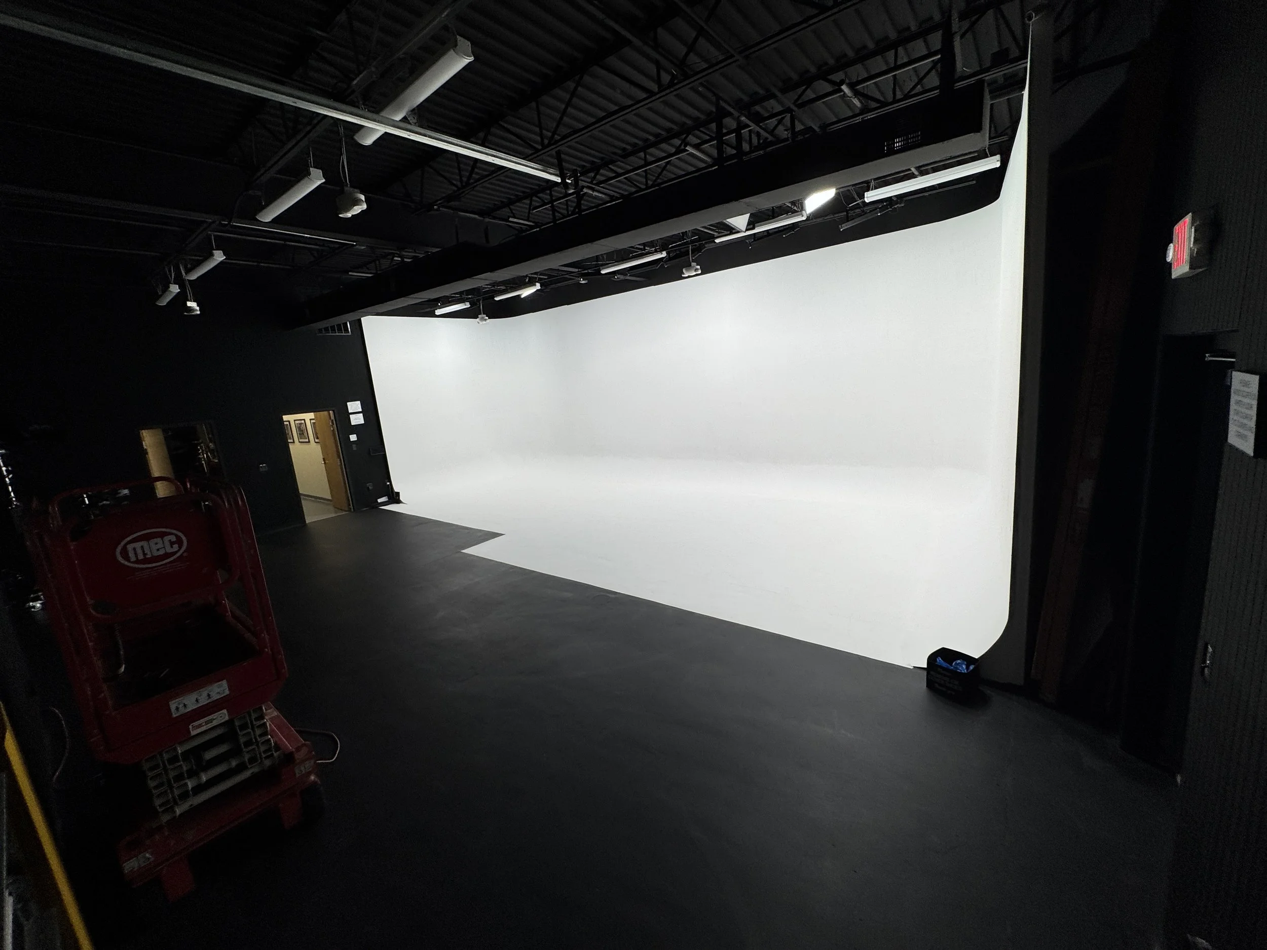 3000 sq ft 180º pre-lit cyc wall with drive-in bay doors